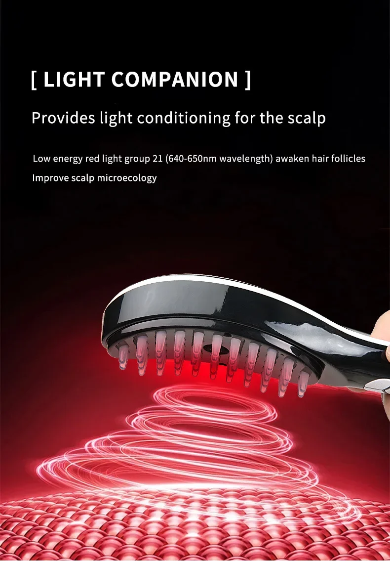 - Multifunctional massage comb, vibration massage red and blue light nano atomization, three effects in one, multi-faceted care for your hair health.